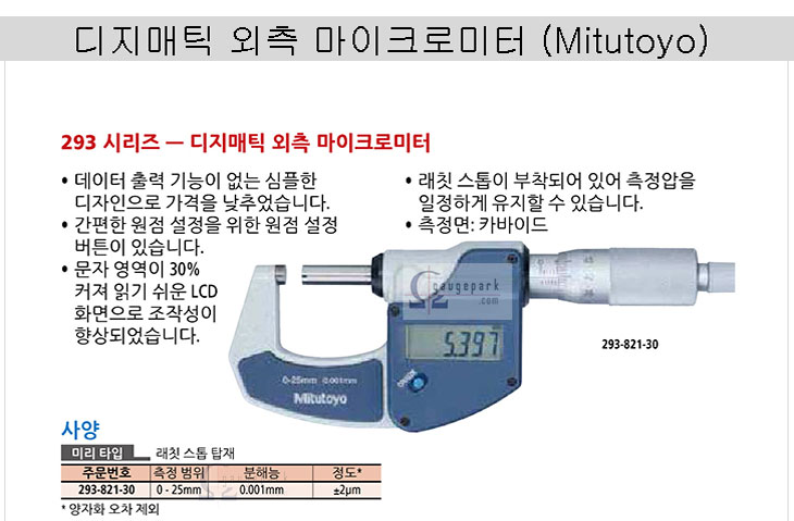 µðÁö¸Åƽ ¸¶ÀÌÅ©·Î ¹ÌÅÍ/µðÁöÅÐ ¸¶ÀÌÅ©·Î¸ÞŸ/293-821(0.001mm)